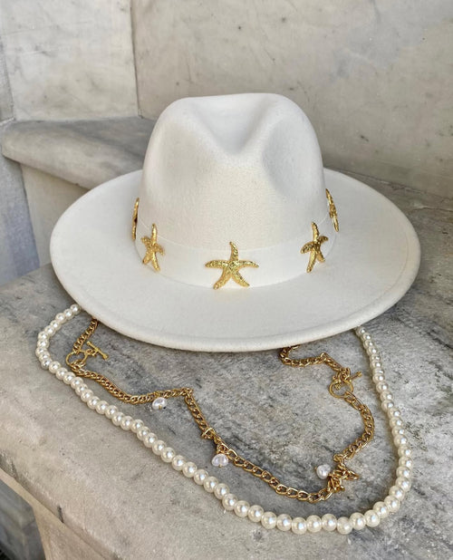 Golden Stars Panama Hat - White